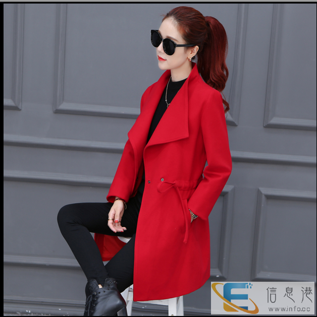 新款毛呢外套中长款韩国收腰百搭呢子大衣妮子