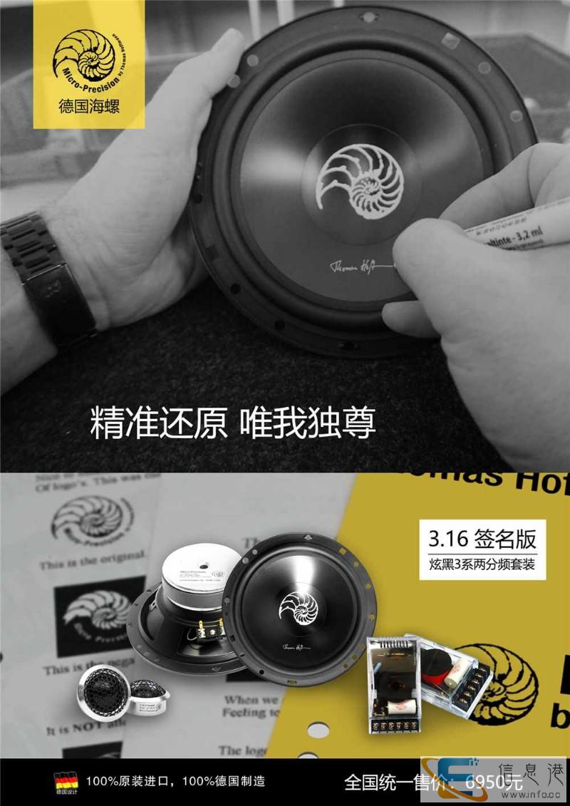 德国制造一直都是精工和严谨的代名词,所以德国制造成为消费者热门追捧的目标,Micro-Precision德国海螺就是其中之一,海螺以3系、5系和7系三条喇叭产品线,从入门、中级到发烧为消费者带来高品质音乐享受。其中海螺3系一直是受消费者青睐较多的一档产品。海螺3系保证元件100%德国生产制造,3系喇叭的投入门槛更亲民。熟知海螺产品的车友都会了解到海螺3系拥有3.13以及3.16套装选择,其中16代表其165mm中低音单元尺寸,也是较为常用在音改的型号。外观标志性的海螺标识以及银白色音盆辨析度十分高。而近期国内的音改市场发现海螺3系“黑化”了,银白色音盆变成炫黑样式。据德国海螺中港澳总代理广州柏仕音响透露,这是较新推出的海螺3.16签名典藏版丨炫黑3系两分频套装,黑色音盆上有海螺原创人Thomas Hoffmann托马斯哈夫曼先生亲笔签名,限量推出极具纪念价值的典藏级产品。一直海螺产品自进入国内市场以来都极受追捧一货难求,这套3.16签名版更是“难上加难”。
